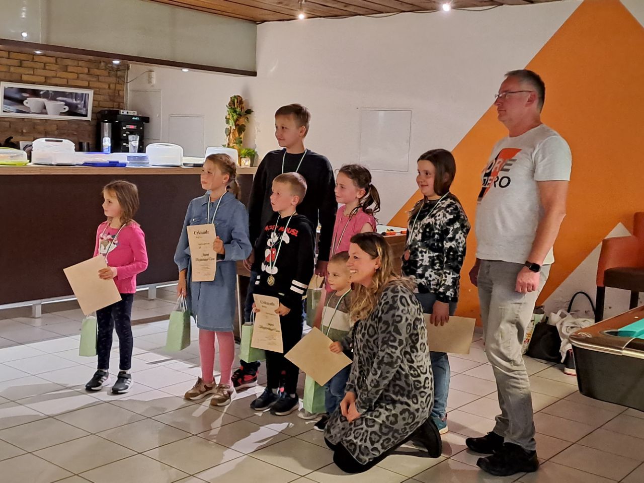 Die Kinder bekamen eine Medaille und einen Pokal und eine Tüte mit Überraschungen.