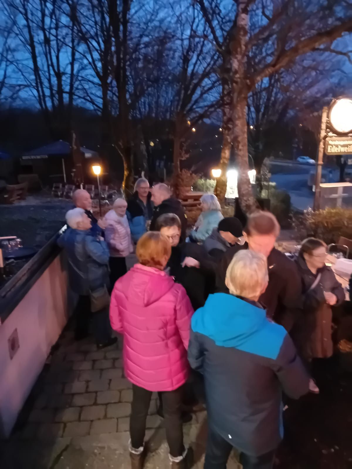 Im Garten der Gaststätte 'Edelweiß' haben wir mit weißen Glühwein "vorgeglüht", dazu gab es selbstgebackene Guatsle, Stollen und Herzhaftes, um dann im Restaurant das Weihnachtsessen zu genießen.